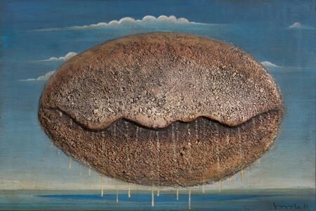 Его работы, напоминающие «окна» в потусторонние миры, наполнены текучими контрастными формами, будто вырезанными из многовековых скал древними цивилизациями, придающими картинам суровость и магическое величие.