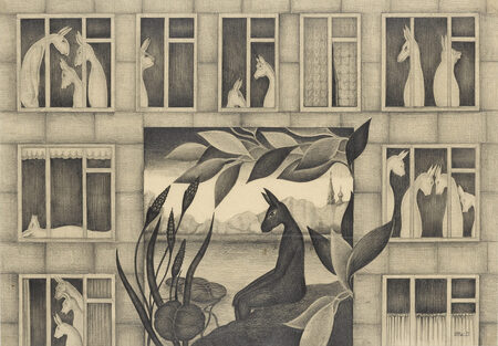В «Сером доме» (1970) и «Многоквартирном доме» (1972) через замкнутое архитектурное пространство, через бесконечные ряды однотипных бесцветных советских квартир природной живостью пробивается обрамленный листвой портал, приглашая жителей бездушного города сбежать в прекрасный цветущий мир.