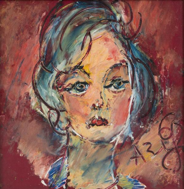 Анатолий Зверев | ЖЕНСКИЙ ПОРТРЕТ НА КРАСНОМ ФОНЕ | 1968
