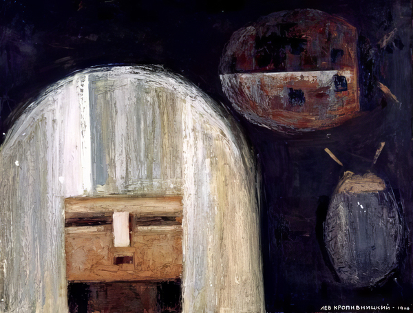 Лев Кропивницкий также был далек от мира советского официоза, среди всего разнообразия художественных и стилистических поисков наиболее ярко отражает дух и уникальный взгляд автора его серия работ с мрачными и застывшими фигурами людей, животных и других существ, неизменно смотрящих прямиком на зрителя.