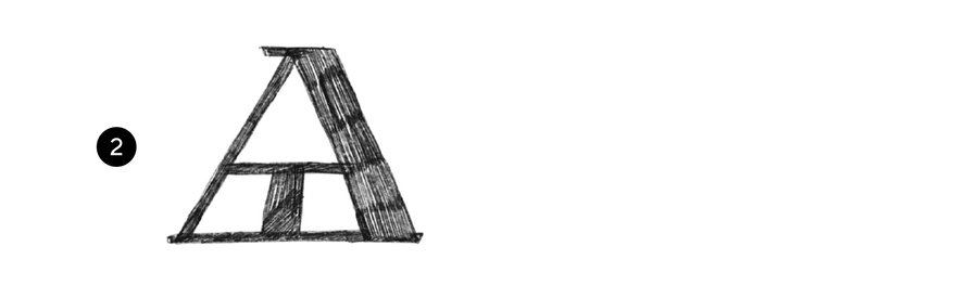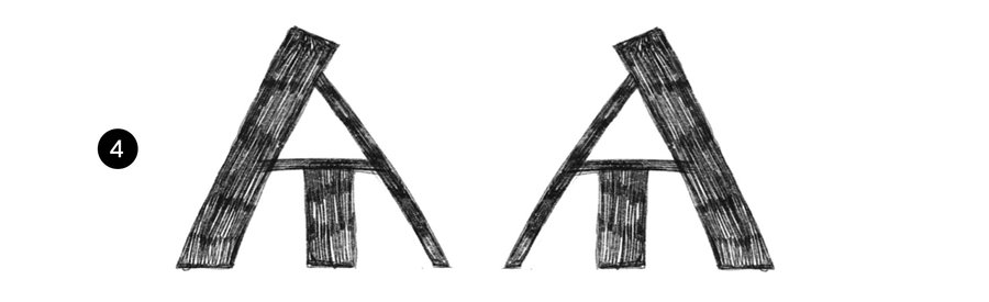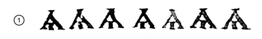 1. Сокращенная закрытая форма без среднего штриха 2. Закрытая форма со средним штрихом и нижней горизонталью 3. Стандартная форма с острым апексом или засечкой в месте соединения штрихов 4. Форма с выносом основного штриха; может быть как частью левого, так и частью правого штриха