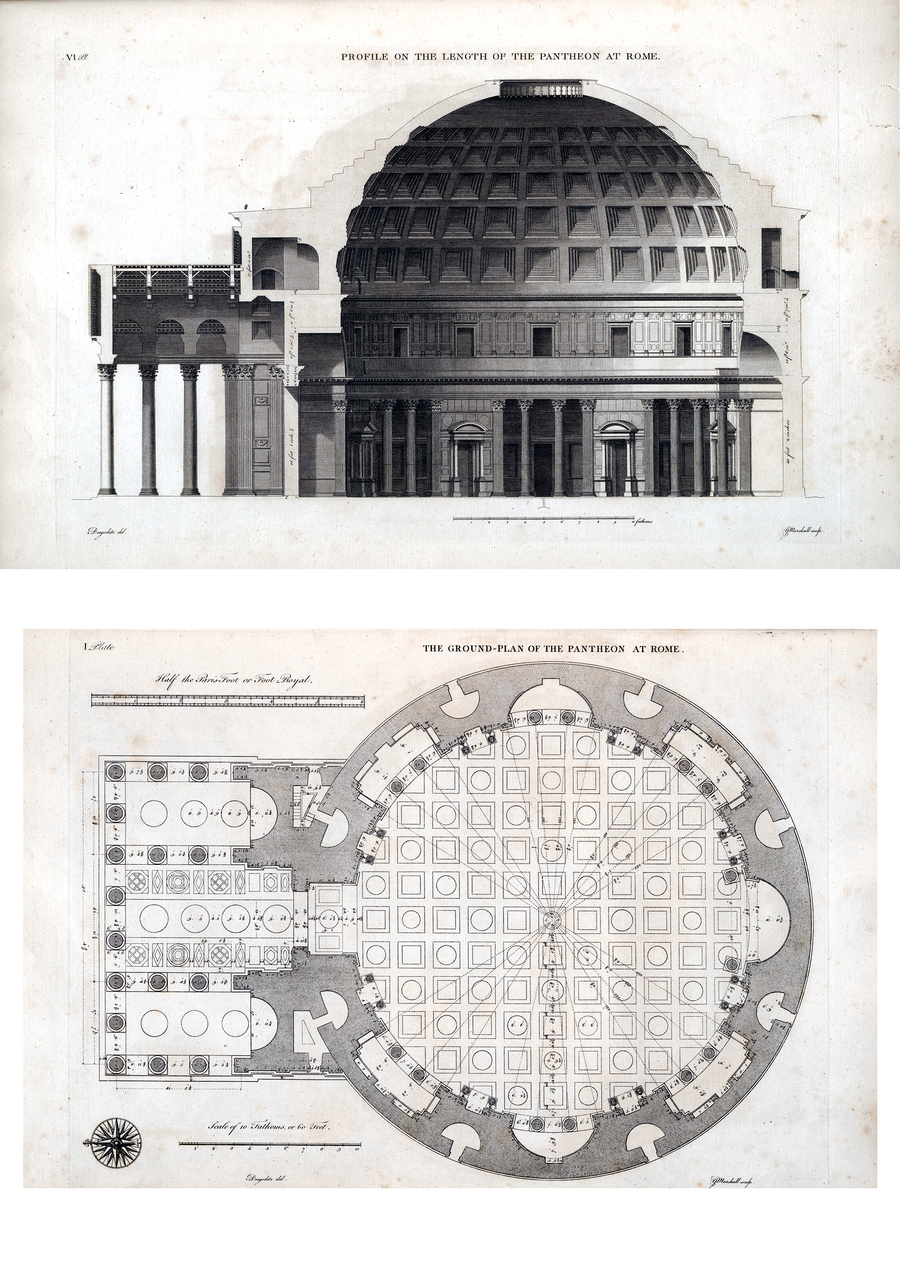 Одним из важнейших примеров римского инженерного мышления является Пантеон в Риме. Построенный в начале II века н. э. при императоре Адриане, он представляет собой выдающееся достижение в области архитектуры. Центральный элемент здания — гигантский купол диаметром около 43 метров, самый большой неармированный купол в мире на тот момент. В центре купола оставлено отверстие — окулус — диаметром 9 метров, через которое внутрь падает свет. Это отверстие не только создает особую атмосферу, но и выполняет конструктивную функцию, уменьшая вес купола. Несмотря на огромные размеры окулюса, благодаря восходящим потокам теплого воздуха даже в дождь на полу Пантеона образуется лишь маленькая лужица — гениальное инженерное решение.