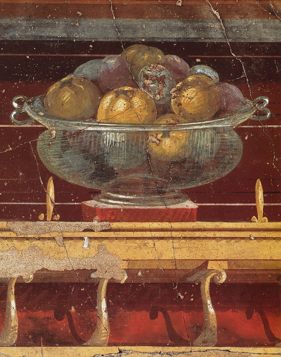 Стеклянная чаша с фруктами Фреска II стиля. Оплонтис, Вилла Поппеи