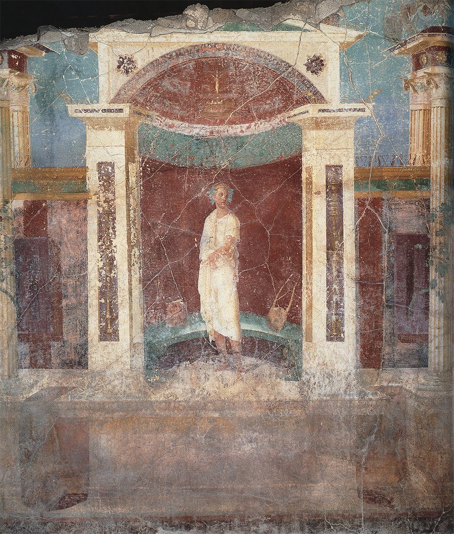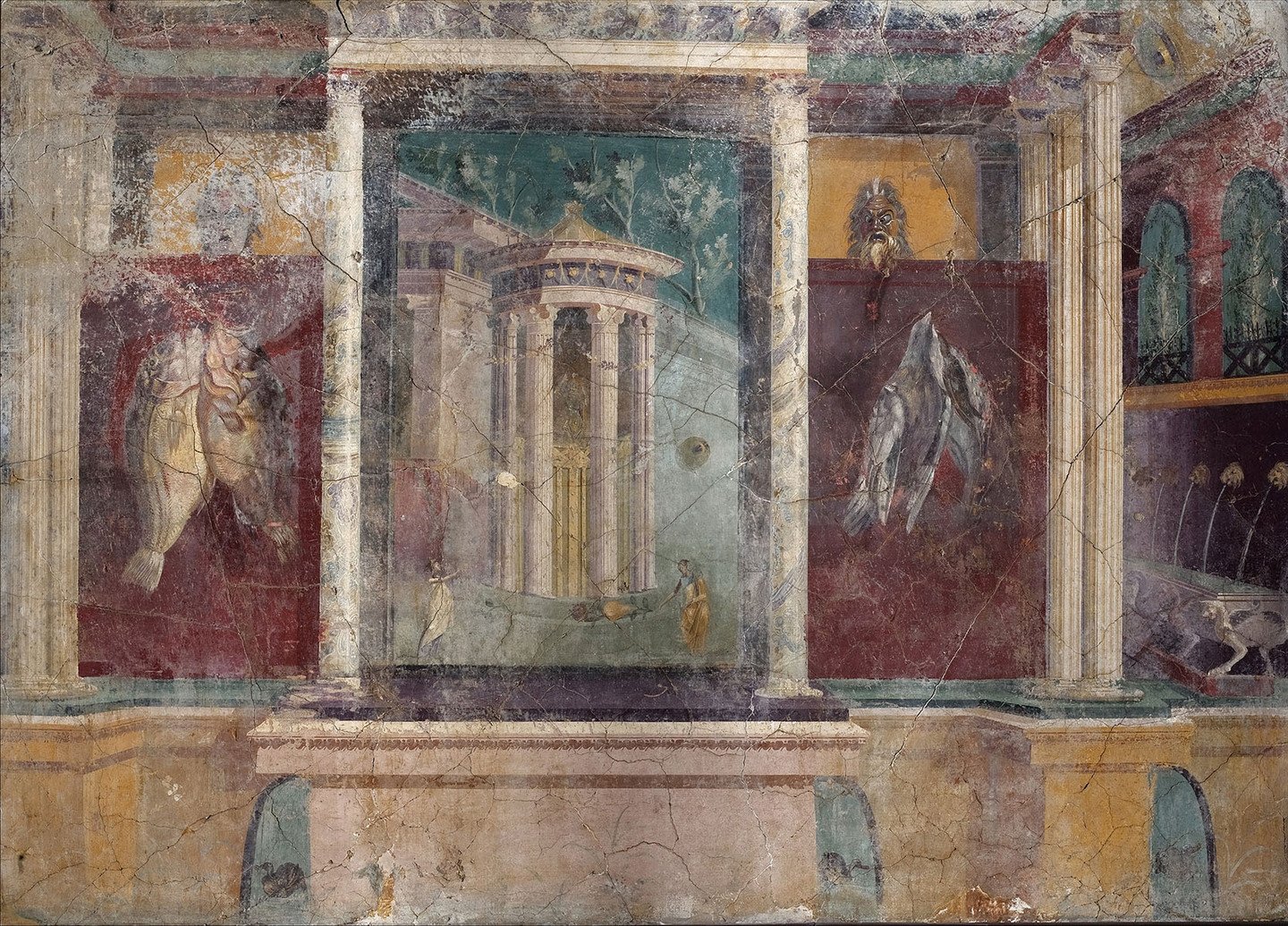 Помпеи были курортным городом, и найденная там живопись — скорее средний уровень. Но даже здесь видно мастерство в передаче пространства и человеческой фигуры. Римские мастера писали фрески, часто приглашая греческих художников, учились у них же.