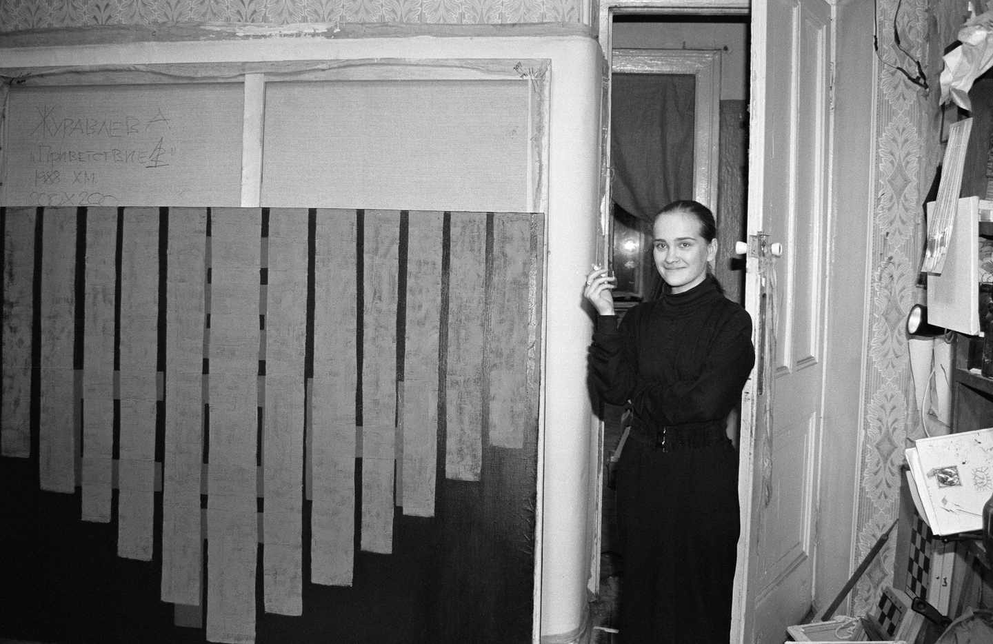 «Юная ассистентка Люда снята на фоне картины Константина Латышева, одного из членов группы художников „Чемпионы Мира“. Это группа последняя из зародившихся еще в советское время. На картине изображены слова Пушкина, несколько странные в ХХ веке. Девушка возле картины также призвана вызывать вопросы у зрителя. Снято во времена, когда Москву наполнили заграничные скауты различных модельных агентств, а все девушки от мала до велика захотели стать фотомоделями. Желательно в Париже. Но Люда была особенной. Она никак не соглашалась никуда уезжать, хотя за ней охотились все скауты. Как-то ко мне подошла Таня Сорокко и попросила повлиять на Люду. Почему-то она считала, что это именно я отговариваю Люду уезжать. Я ответил, что я ей не папа и не вмешиваюсь в ее судьбу. На самом деле я действительно относился к ней по-отечески и не хотел, чтобы она уезжала, но я прекрасно понимал, что она не сможет долго сниматься у меня практически бесплатно. В итоге Люда все-таки уехала в Лондон, откуда вернулась в расстроенных чувствах. После возвращения она у меня не снималась.»