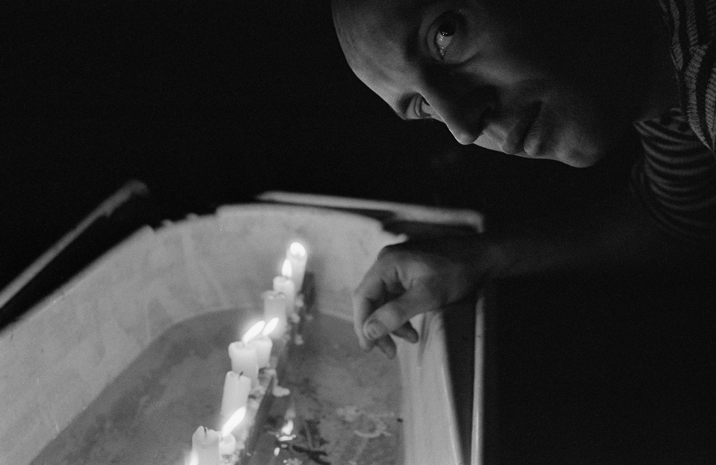 «В 1989 году я подрядился делать портфолио для модельного агентства „Жар-птица“. Поздняя перестройка. Безвременье. Все девушки от 12 до 32 лет захотели стать фотомоделями. Их можно было понять. В стране ни работы, ни перспектив. Даже состоятельных мужиков нет. Разве что „рэкетиры“ или иностранцы. Все иностранцы — от почтальона до дальнобойщика. Агентством заправляли два американца-гея. Работа была малодоходная, но наличие симпатичных девушек компенсировало тяготы. Разумеется, я старался их снимать не только для портфолио. Аня была одной из лучших. Радостная, задорная. Не обращала внимания на окружающих. Таких, как эти парнишки, к примеру, купающиеся в сомнительной чистоты водах Москва-реки. Через три года пришла грустная весть — погибла от сверхдозы в Нью-Йорке. Перепутала кокаин с героином.»