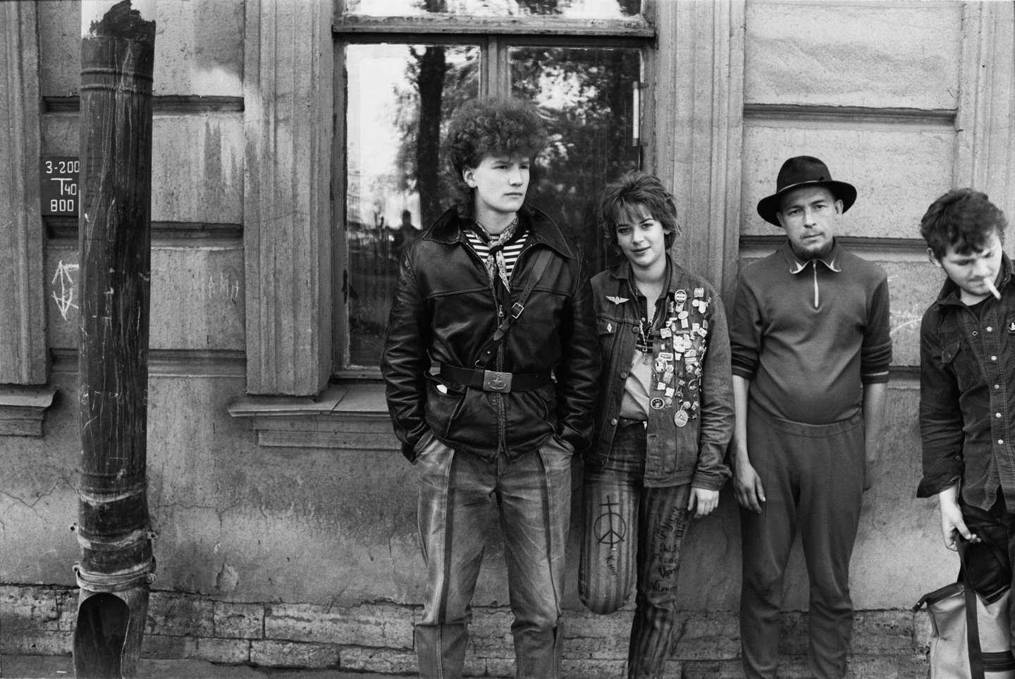 Илья Пиганов «Модели Ирен Бурмистровой», 1988 год // архив Миши Бастера «Показ альтернативных мод на Кузнецком Мосту», 1987 год // Александр Бойко «Стиляги на Невском проспекте», 1984 год