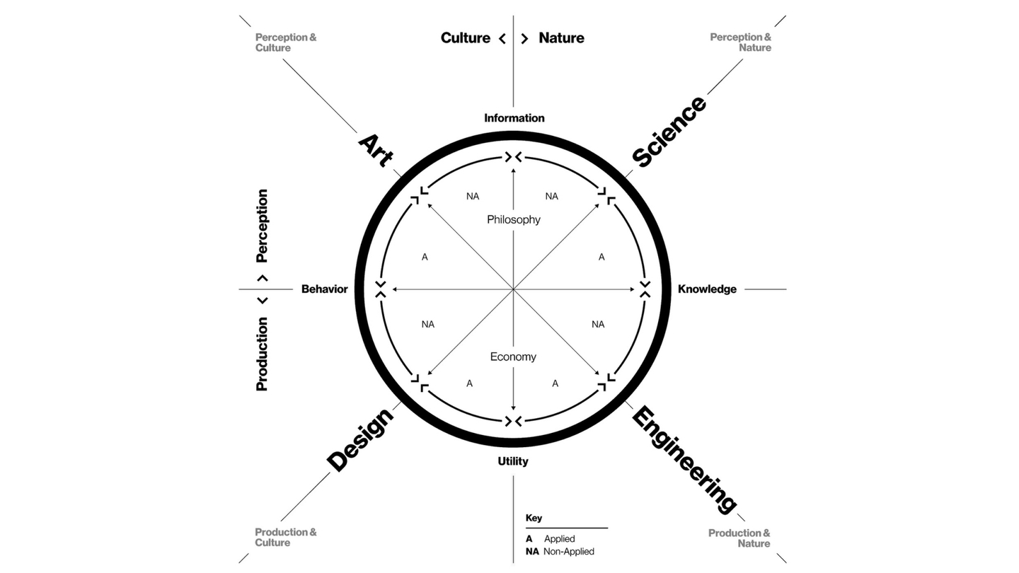 Нери Оксман «Цикл творчества Кребса» (2016). Схема о взаимосвязях между областями дизайна, науки, искусства и инженерии. «Одна область может стимулировать (р)эволюцию внутри другой» [3]