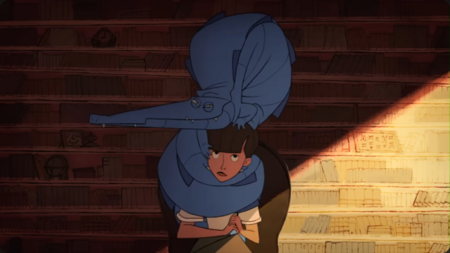 Ближе к концу фильма жизнь Анре стремительно разрушается — окружение все больше и больше перестает принимать его. И, когда состояние героя достигает точки кипения — мир вокруг него тоже начинает разрушаться — это тоже показано как раз с помощью рисованной анимации, когда Анре сидит в своей комнате, наполовину погруженный в пол, окруженный ставшими бесполезными рисунками, эти рисунки словно отрываются со стен, тоже покидая пространство вокруг Анре.