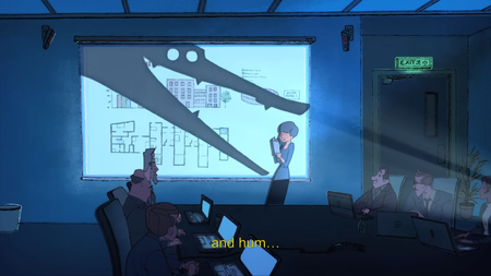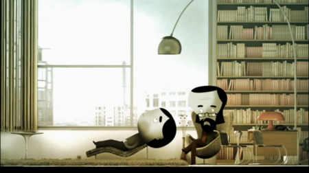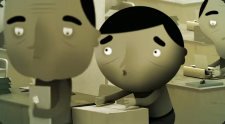 При рассмотрении фильма с точки зрения визуала сразу можно отметить его стилизацию. Так как анимация в этом фильме рисованная, это позволяет художникам «разгуляться» в плане дизайна персонажей — во многих 2Д мультфильмах очень колоритные и яркие персонажи с узнаваемыми силуэтами. В данном случае, особенно интересно изображены герои второстепенного плана — психолог из первой сцены, коллеги во время презентации, даже персонажи, возникающие на заднем фоне кафе всего на несколько секунд — все они выглядят фигурными, язык их дизайна гиперболизированный и даже немного карикатурный.