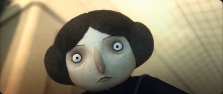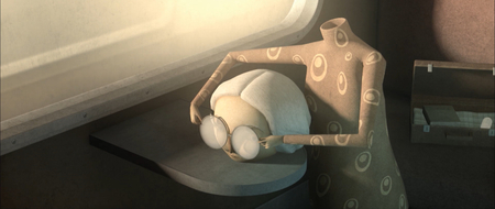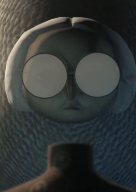Кроме этого, можно добавить, что курицы не отображаются в отражении стекла. Это заставляет задуматься о том, существовала ли эта история вообще, или подсознание старушки создало ее из нескольких образов. В любом случае, в этой сцене угловатость и неотшлифованность моделек куриц по сравнению с другими модельками играет на руку визуальному повестованию, так как в этот момент у зрителя уже должны закрадываться сомнения о достоверности истории Жаклин.
