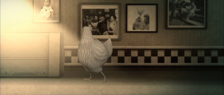 Анимация этого фильма выполнена в формате 3Д. У изображений присутствует определенная текстурность — от персонажей до бэкграундов. Однако, в фильме присутствует момент, в который анимация немного меняется. Это почти незаметно по сравнению с, например, «Skhizein», где сочетается рисованная анимация и 3Д анимация — но это так же дополняет ощущение от сцены. Сцена, в которой это происходит — когда Жаклин вспоминает историю из своего детства с курицами. Модельки куриц на фоне кухни (текстурной и подходящей под уже заданный стандарт в фильме) выглядят намного менее текстурными и как будто незаконченными, и это особенно ощущается в тех моментах, когда они совмещаются с фотографиями живых людей — это бросается в глаза и создает дополнительное ощущение нереальности происходящего.