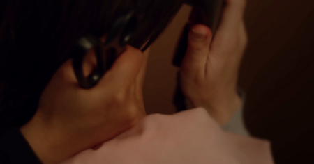 Лейла видит ее кошку, которая незаметно пробралась в сарай вместе с ней. Кошка уселась под веревкой, которая случайно обвила ее шею, и, когда она попыталась спрыгнуть, веревка начала ее душить. Лейла в ужасе, она хватает садовые ножницы и спешит на помощь зверьку. Комбинация интрузивных мыслей о том, что она может навредить кошке этими ножницами, опасности, в которой находится кошка из-за веревки — тем более, что кошка пытается вырваться из нее, соответственно, она не стоит на месте и перерезать веревку намного сложнее — и окружающих ее пил ударяет по героине всеми ее страхами одновременно, она начинает плакать, но не отступает. Брат слышит ее и пытается открыть сестре дверь, но та застряла и он ничем не может помочь.