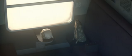 В то время, как женщина ищет Жаклин по всему поезду, та вновь предается воспоминаниям. Она раздумывает вслух о том, как ей не терпится поскорее очутиться у моря, и вспоминает, как когда-то привозила на море свою дочь. Одновременно с ее воспоминаниями серый вид за окном преображается — он становится намного более светлым, вокруг вместо деревьев появляются красивые рыбы, которых Жаклин очевидно ассоциирует с морем — и, соответственно, со своими воспоминаниями. Перед тем, как вернуться в своё купе, смотря в окно, она думает о том, что ей хочется рыбы и что надо бы не забыть попросить у ее бабушки рецепт какого-то рыбного блюда. Для зрителя очевидно, что, так как Жаклин сама уже довольно пожилая женщина, ее бабушки давно нет в живых — и этот момент дает нам понять, что в данный момент она воспринимает мир вокруг не так, каким он является в действительности.