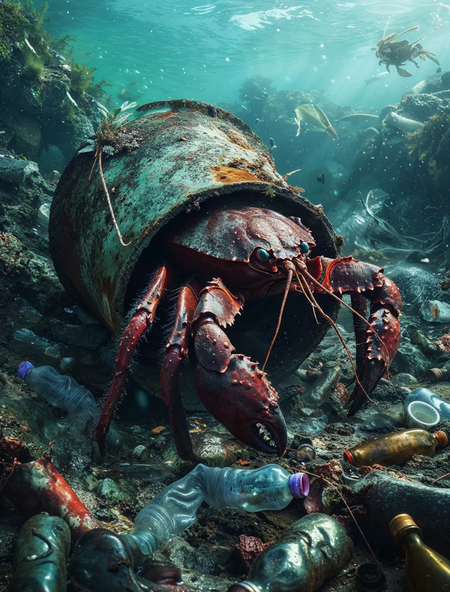 В глубинах подводного мира, отшельники-крабы проводят беспрецедентное модное шоу под названием «Неделя Моды Апокалипсиса». Это мероприятие — не обычный праздник моды, а выставка, невольно спонсированная человечеством. Маленькие обитатели океана, с их уникальным творческим подходом и «высоким» вкусом, превращают выброшенный человеком океанский мусор в стильные жилища и украшения.