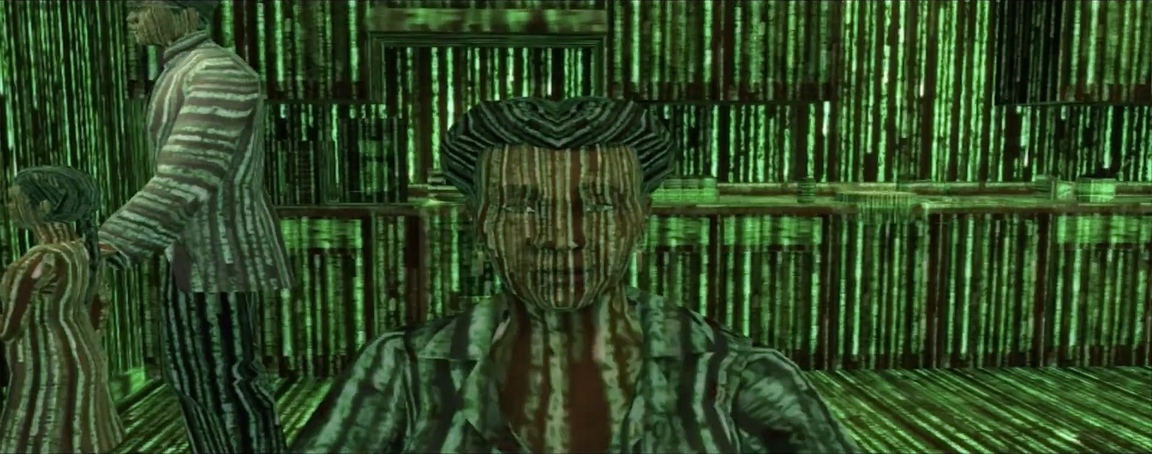Кадры из «Матрица» (Matrix, реж. Л. и Л. Вачовски, 1999), «Аниматрица» (2003), The Matrix Online (разраб. Monolith Productions, Daybreak Game Company, 2005).