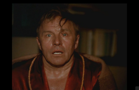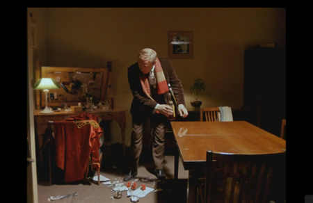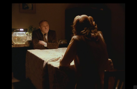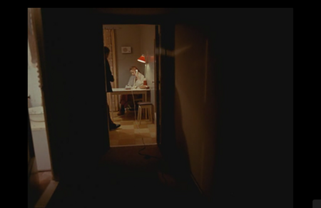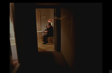 Диалог внутри каждой комнаты не разбивается резким монтажом, напряжение поднимается за счёт движения внутри планов: герой входит в свет, уходит в тень, отдаляется в глубину комнаты или остается на переднем план