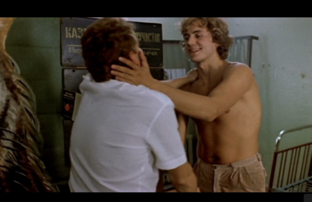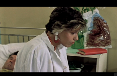 В больничных сценах повторяется тот же мотив, но с другой интонацией. Из безличной системы в личную уязвимость. Разговор Веры с Сергеем происходит в общей палате, среди других больных, где даже боль и сочувствие не могут стать частными. Камера фиксирует их близость как неудобную и неуместную.