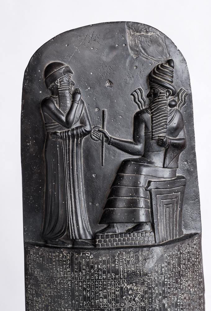 Текст Законов написан клинописью на черном столбе из базальта. Вверху этого столба, изображен Бог солнца и справедливости — Шамаш, дарующий царю Хаммурапи царскую власть.