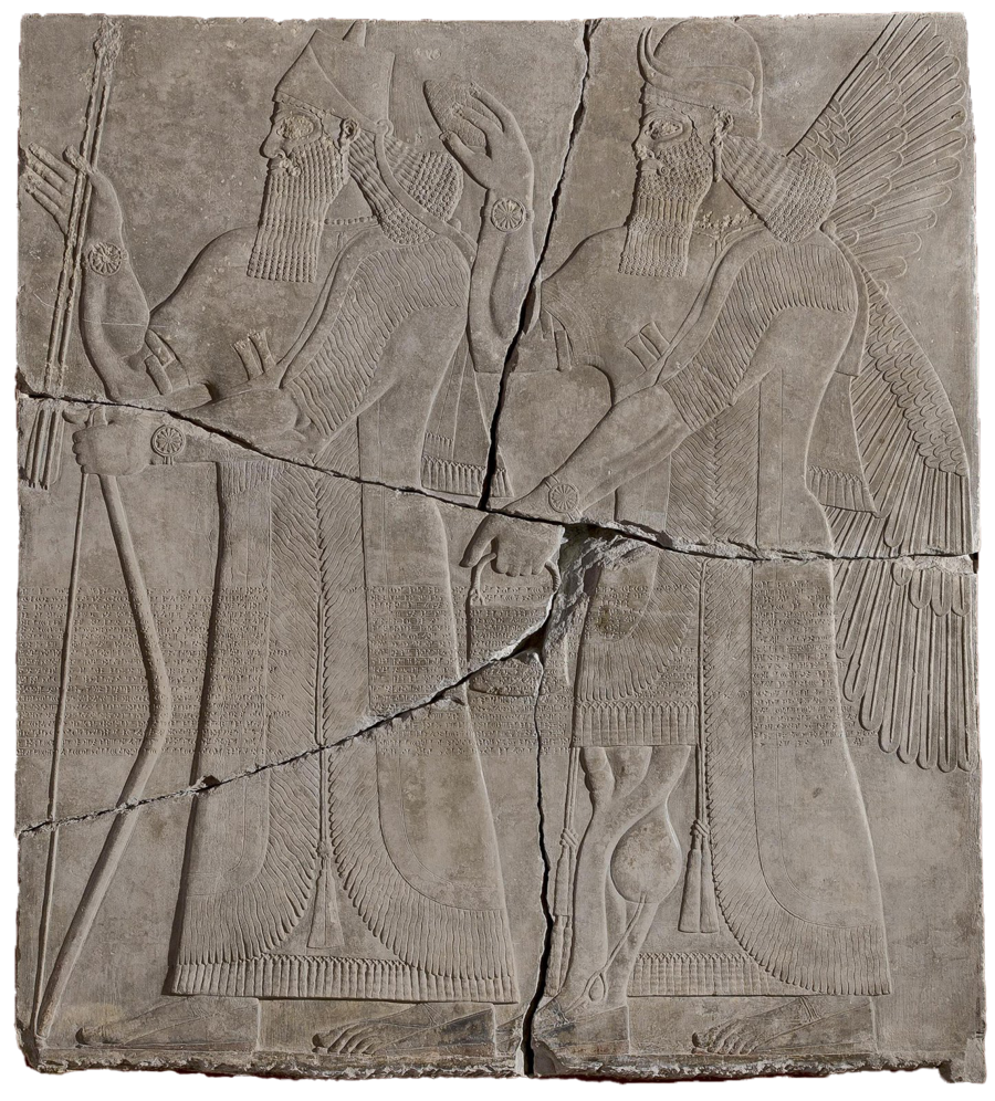 Рельеф из дворца Ашшурнацирапала II с клинописной надписью и изображением царя и его бога-хранителя 883-859 гг. до н. э.