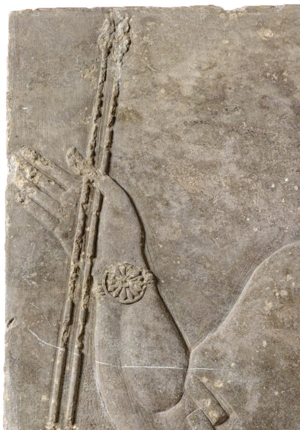 Чтобы показать мощь царя, ассирийские скульпторы IX в. до н. э. делали его фигуру огромной, поэтому остальные фигурки теснились кое-как. В VII в. до н. э. та же цель достигается уже иначе.