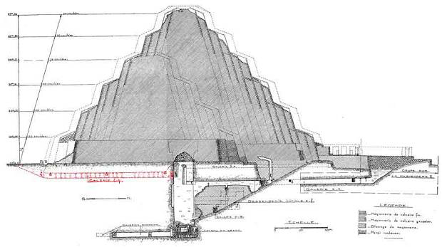 Архитектором пирамиды Джоссера станет Имхотеп. В ходе строительства возникнет идея увеличить наземную часть гробницы по вертикали. На первую мастабу поставят еще три, каждая из которых будет меньше предыдущей. В дальнейшем пирамиду повысят еще на две ступени; при этом для сохранения пропорциональности всего сооружения увеличат и общие размеры пирамиды.