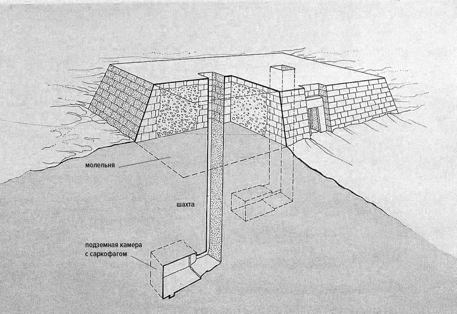 Мастабы имели очень простое устройство, состоящее из молельни, куда приходили родственники усопшего и жрецы, принести дары или амулеты, которые помогут душе в загробном мире. Была шахта, которая вела в подземную камеру, где бережно хранилось тело усопшего.