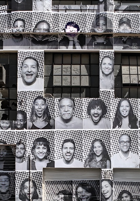 Художник JR призывал людей из разных стран загружать свои портреты через сайт или социальные сети. Эти изображения печатались в гигантских форматах и становились частью уличных инсталляций, продвигающих идею коллективной идентичности.