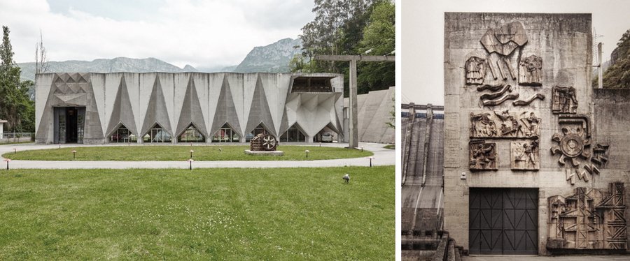 1-2.Фасад здания и интерьер ГЭС в Проасе, Испания, строительство в 1964–1968 гг. (арх. Хоакин Вакеро Паласиосу)