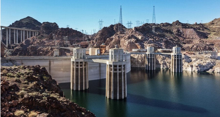 1-3.Плотина Гувера, Лас-Вегас, США // 4.Озеро Мид у плотины Гувера, появление в 1936 г.