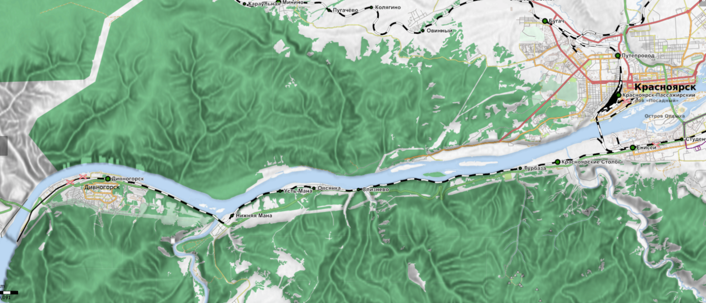 1-2.Ответвление участка железной дороги по маршруту Енисей-Дивногорск