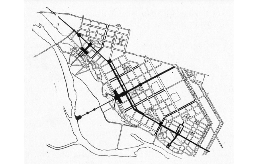 1.Первоначальная схема планировки Волжского, 1952 г. // 2.Схема планировки города, основанная на первой схеме, 1954 г. // 3.Проект планировки Волжского, 1960 г.