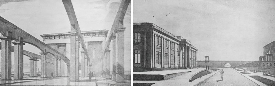 1.Набережная у Северного Речного вокзала // 2.Площадь внутри Северного Речного вокзала, г. Москва, РСФСР, (арх. А. М. Рухлядев) строительство в 1937 г.
