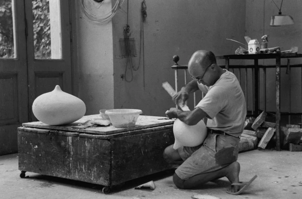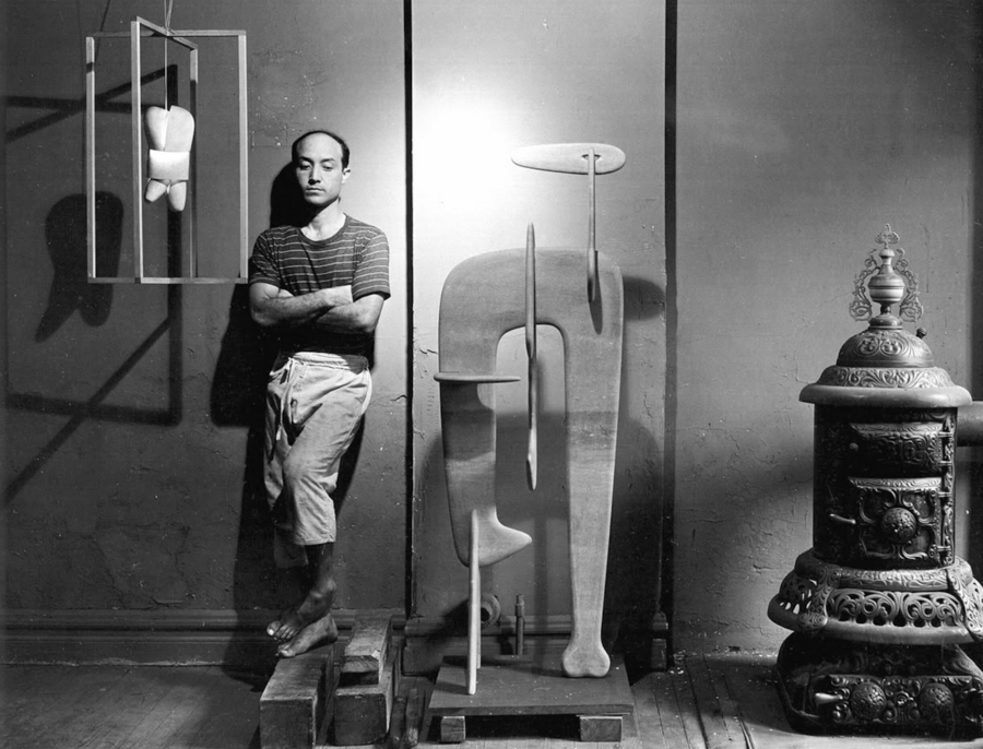 Портрет Исаму Ногучи, 1947; Исаму Ногучи, стол «IN-6», 1944; Исаму Ногучи за работой, 1950-е; Исаму Ногучи, «My Mu», 1950; Исаму Ногучи, скульптура «My Pacific», 1944