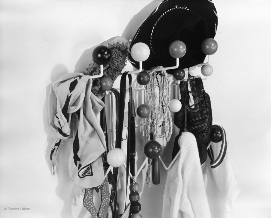 Чарльз и Рэй Имз, стул «Lounge chair», 1944; Чарльз и Рэй Имз, проволочный диван, 1951; Чарльз и Рэй Имз, вешалка настенная «Hang-It-All», 1953