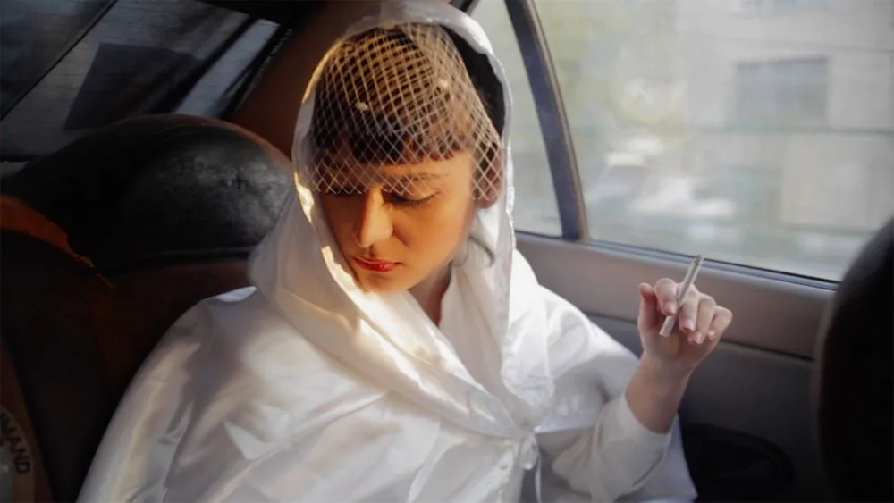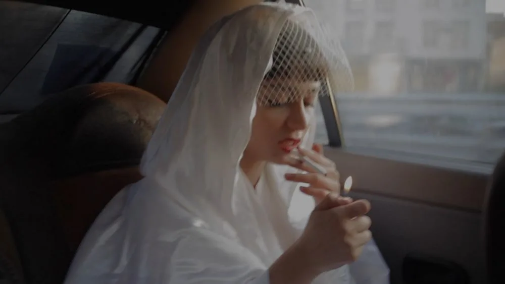 Тао Хуэй в «Закате Тегерана» переносит предсмертную речь гонконгской поп-звезды Аниты Муи в контекст современного Ирана. Когда слова азиатской знаменитости звучат в устах иранской певицы, художница выявляет, как социальные ограничения, несмотря на разные культурные и политические системы, создают схожие паттерны женской судьбы. Выбор локации — движущийся автомобиль в вечернем Тегеране — становится метафорой замкнутой мобильности: героиня одновременно находится в движении и остается ограниченной рамками машины, как и многие женщины, достигшие профессионального успеха, остаются заложницами общественных ожиданий. Свадебное платье и фата на героине в сочетании с её монологом о несбывшейся мечте создают образ «неудавшейся женственности», который, как показывает Хуэй, оказывается актуальным как для либерального Гонконга, так и для консервативного Ирана.