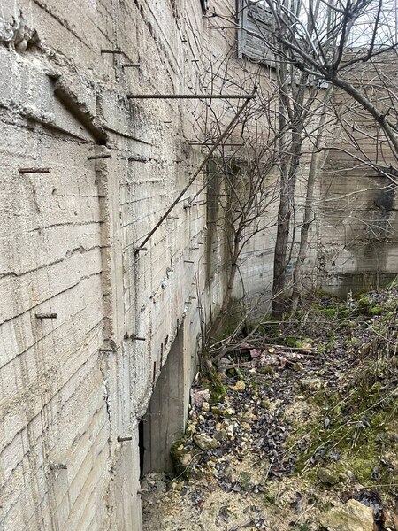 Вид на объект со стороны Волги и фрагмент наружной стены здания / личный архив / 2024 г.