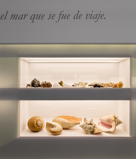 Следующий проект показывает, как много значит современное эстетичное оформление экспозиции и качественное продуманное освещение. Коллекция моллюсков в доме-музее чилийского поэта Пабло Неруды представлена теперь с помощью нейтральных светлых элегантных конструкций. Изогнутый вход необходим для отделения данного зала от остального пространства.