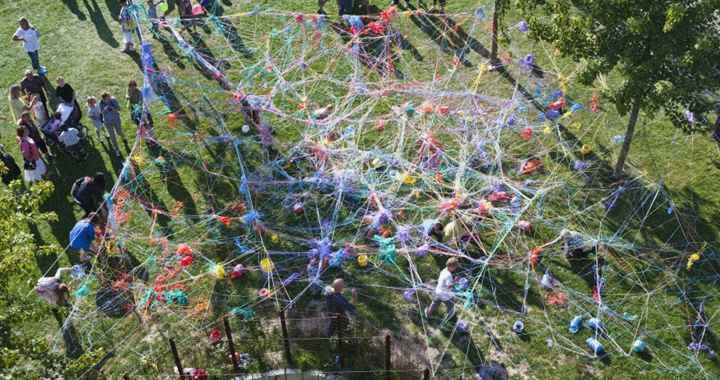 Проект Каролин Ларсен «Коллективные нити» (2019) отсылает к созданию новых нейронных, а также коммуникативных связей. Проект представлял собой перформанс, в ходе которого участникам предлагалось в хаотичном порядке растягивать цветные нити между друг другом, создавая подобие паутины или сети. Художница вдохновляет публику на то, что таким образом можно создавать новые нетипичные маршруты, позволяющие раскрыть потенциал, заключённый внутри нас. Зритель можешь почувствовать себя не только автором проекта, но и творцом собственных путей.