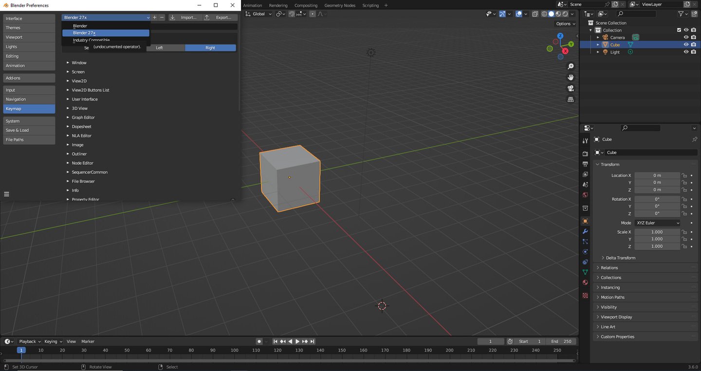 1. Blender 27x (раскладка старых версий) 2. Blender 3.0 (актуальная раскладка с 2018 года) 3. Industry Compatible (имитация 3д-редактора Maya)