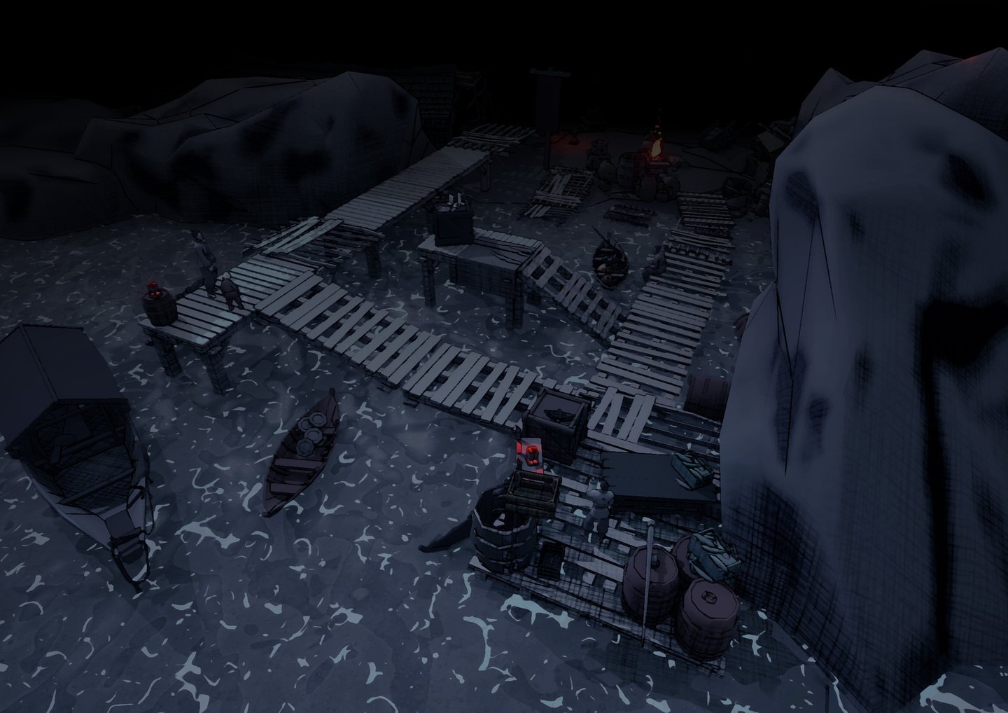 Рыбацкая деревня, пирс, жилая зона, приют.