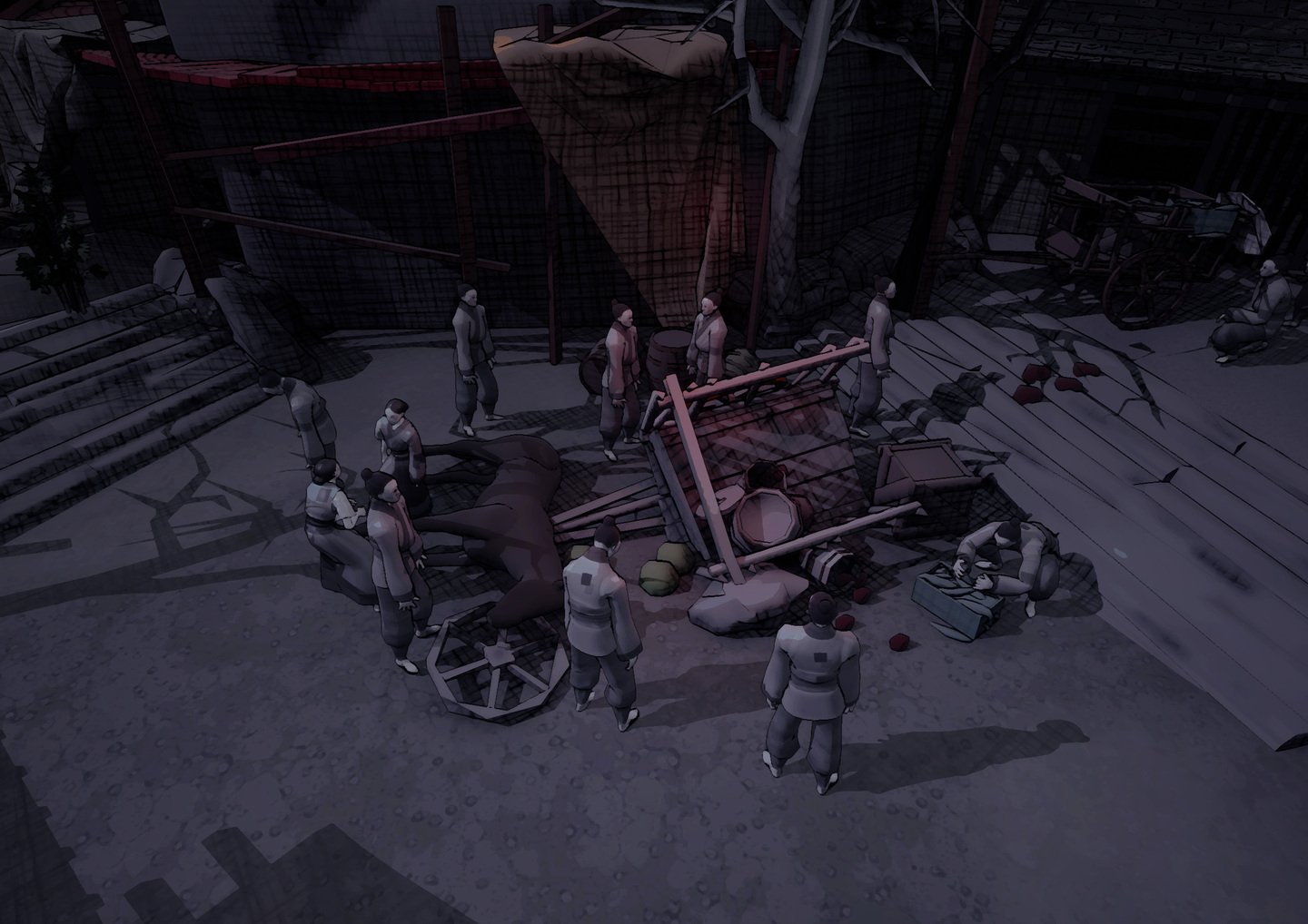 Всего в игре сейчас 6 локаций: пролог, основная часть города (самая большая локация), индустриальная зона. А также 3 внутренних помещения. Я занималась всем, кроме индоров.