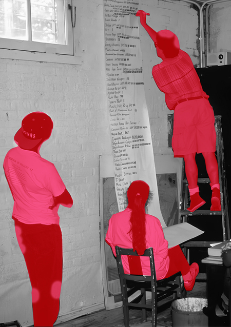 Оказываясь в этом пространстве, вы садитесь за столик, выбрав, что полезное вы можете сделать для кого-то (например, сложить белье, проштамповать почту, вырезать что-то или сделать печенье своими руками, а может быть и вовсе раздавать материалы со списками номеров горячих линий и советами о том, как заботиться друг о друге) и присоединяетесь к группе. Вы можете присоединиться к обсуждению, а можете молча слушать других — в целом, вести себя так, как вам будет комфортно, не боясь осуждения. Задачи в 2018 году включали в себя политически заряженные формы заботы, написание писем избирателям во время промежуточных выборов в США. Художница призывает нас объединиться в общем порыве бережности и взаимопомощи, подчеркивает то, как важно иметь место, где можно собраться всем вместе в кризисные моменты, чтобы понять, как жить дальше.