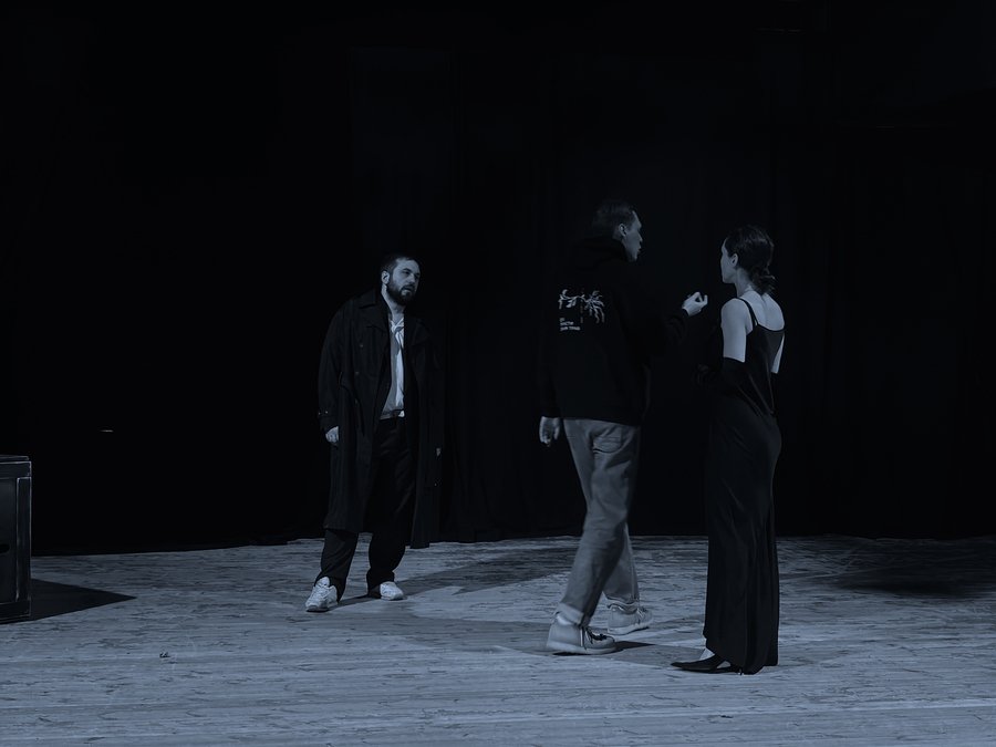 В результате лаборатории были отобраны три отрывка и объединены в один спектакль.