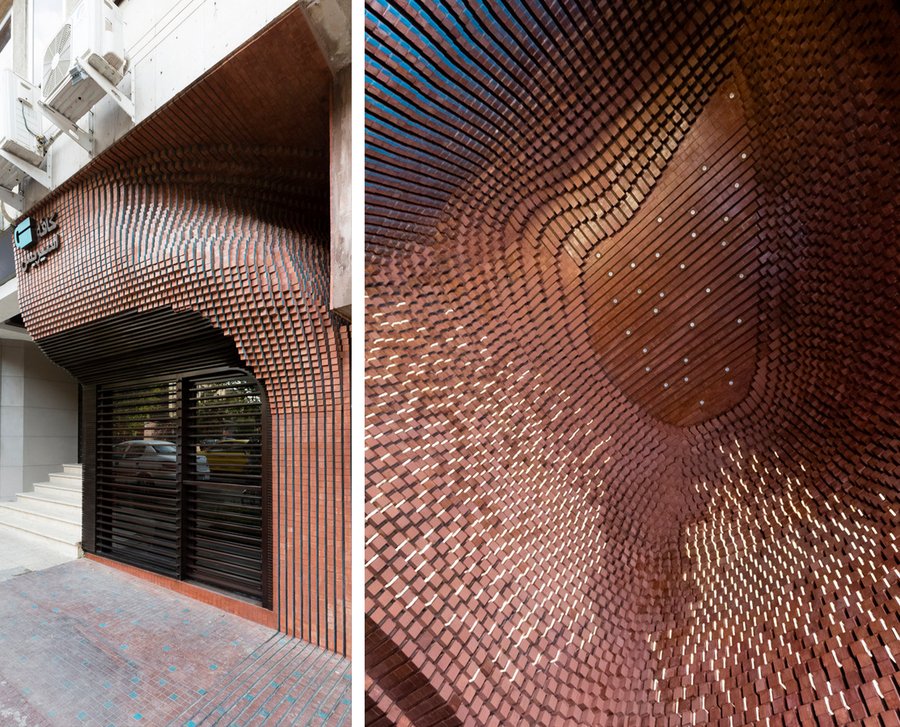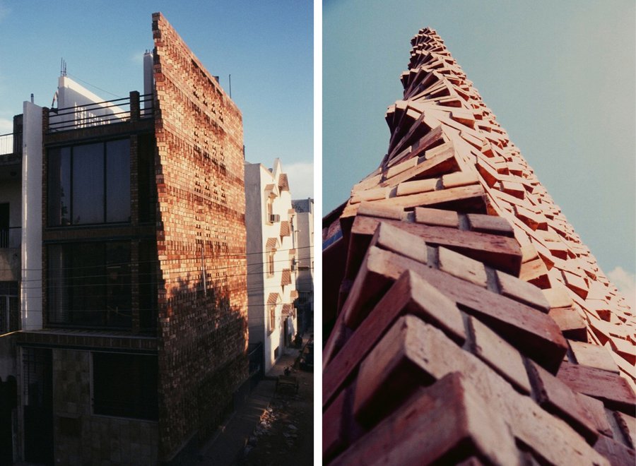 Команда Studio Dwell Architects создает при помощи «витых колонн» из кирпича бриз-соле, позволяющий естественному свету проникать сквозь структуру стены. Ту же функцию выполняют колонны предыдущего проекта.