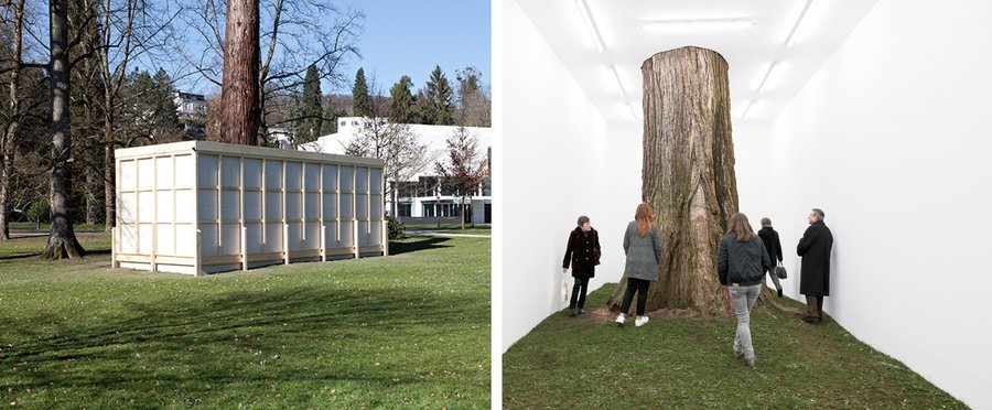 Элиассон, Кнехт и Ли Фибиг своими инсталляциями переворачивают устоявшийся (по крайней мере в полотне этого исследования) прием — синтезировании живой среды в выставочной. Здесь они не играют в природу в музее, а играют в музей на природе.