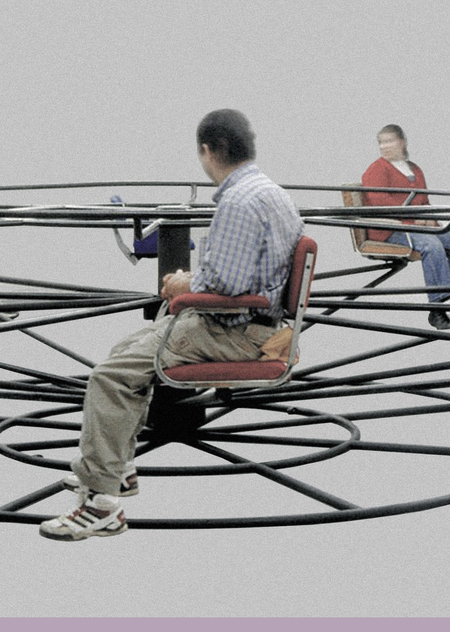Инсталляция Джоанны Васконселос «Место встречи» (2000) представляет собой переплетение противоположных концепций: формальной офисной среды и игривости детской карусели. Десять дизайнерских стульев, яркие ткани и промышленный ковер создают атмосферу строгого офиса руководителя, но круговое движение и приглашение к участию превращают это пространство в игровую площадку. Художница искусно подрывает устоявшиеся значения и ожидания, смешивая формальность и игривость, работу и развлечение. Взаимодействие зрителей становится неотъемлемой частью инсталляции. Выбор направления вращения требует координации и адаптации во время диалога, из чего складывается создание кардинально нового опыта взаимодействия.