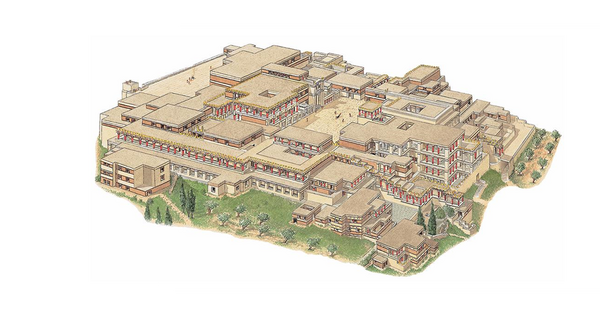 Кносский дворец — крупнейший из минойских дворцов (более 1000 помещений). Выполнял административные, экономические и культовые функции. Построен около 2000 г. до н. э., разрушался землетрясениями и пожаром, окончательно уничтожен около 1450 г. до н. э. После этого использовался ахейцами, позднее разрушен снова.