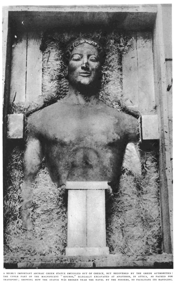 Верхняя половина статуи, упакованная для транспортировки Now in Greece // The Illustrated London News окт. 9, 1937. стр. 626.