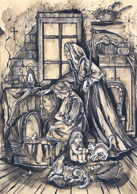 Диана Кузнецова. Иллюстрации «Колыбельная» и «Серенада». 2020 год. Акварель, тушь.